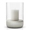 Ideálne do obývačky alebo na letné večery. Vhodné na použitie v interiéri alebo exteriéri. Betónový podstavec plynule prechádza do skleneného krytu, ktorý chráni sviečku pred vetrom, a tak si romantickú atmosféru môžete navodiť aj na vonkajšej terase, či záhrade.